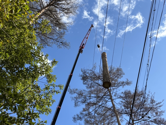 電線に近い木は、枝先に力が集中しやすく、想像以上に折れやすいため、