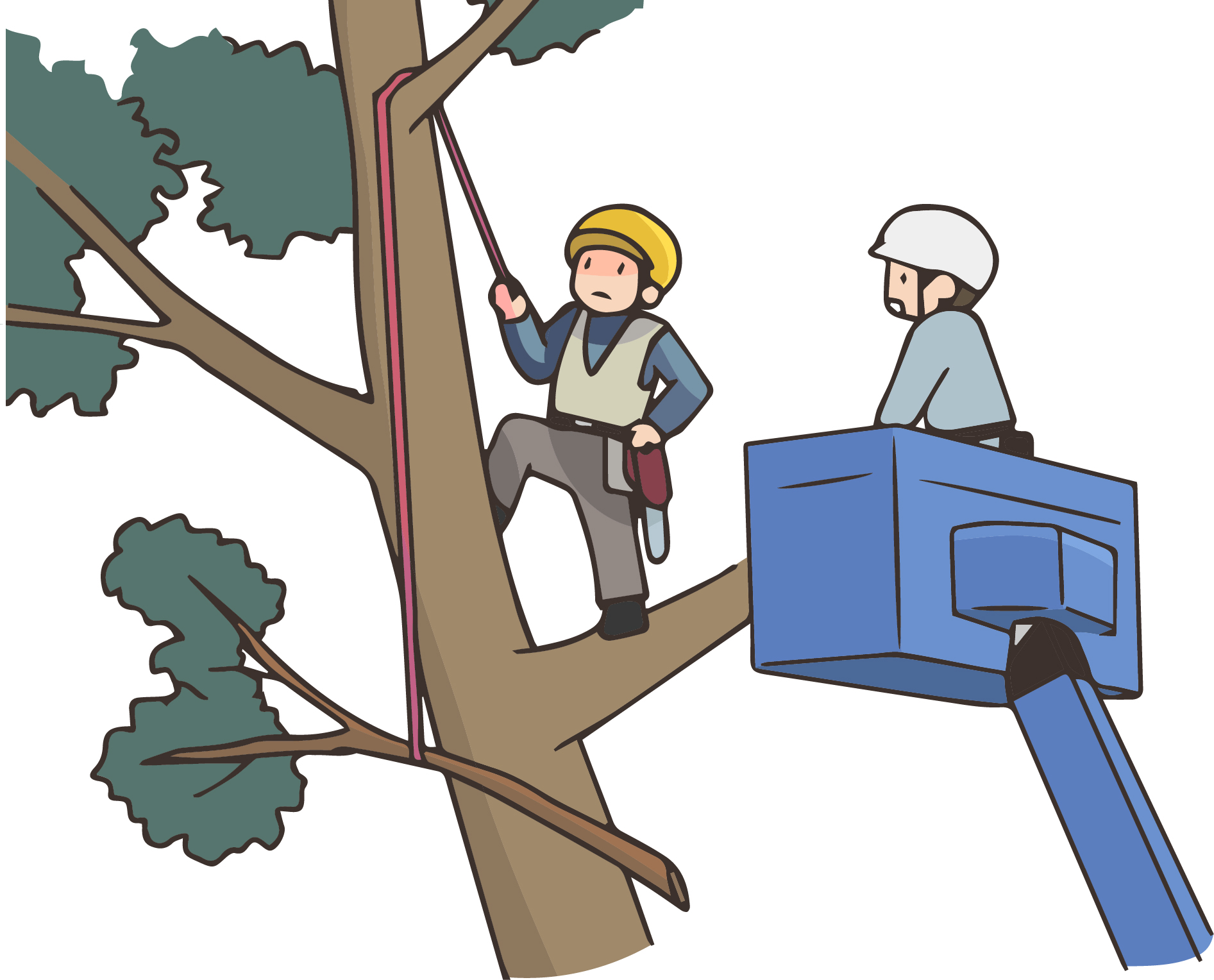 高木の伐採は地上から簡単に切れるものではありません。作業員が木に登ったり、安全帯を使って上から順に枝を落としていく必要があります。